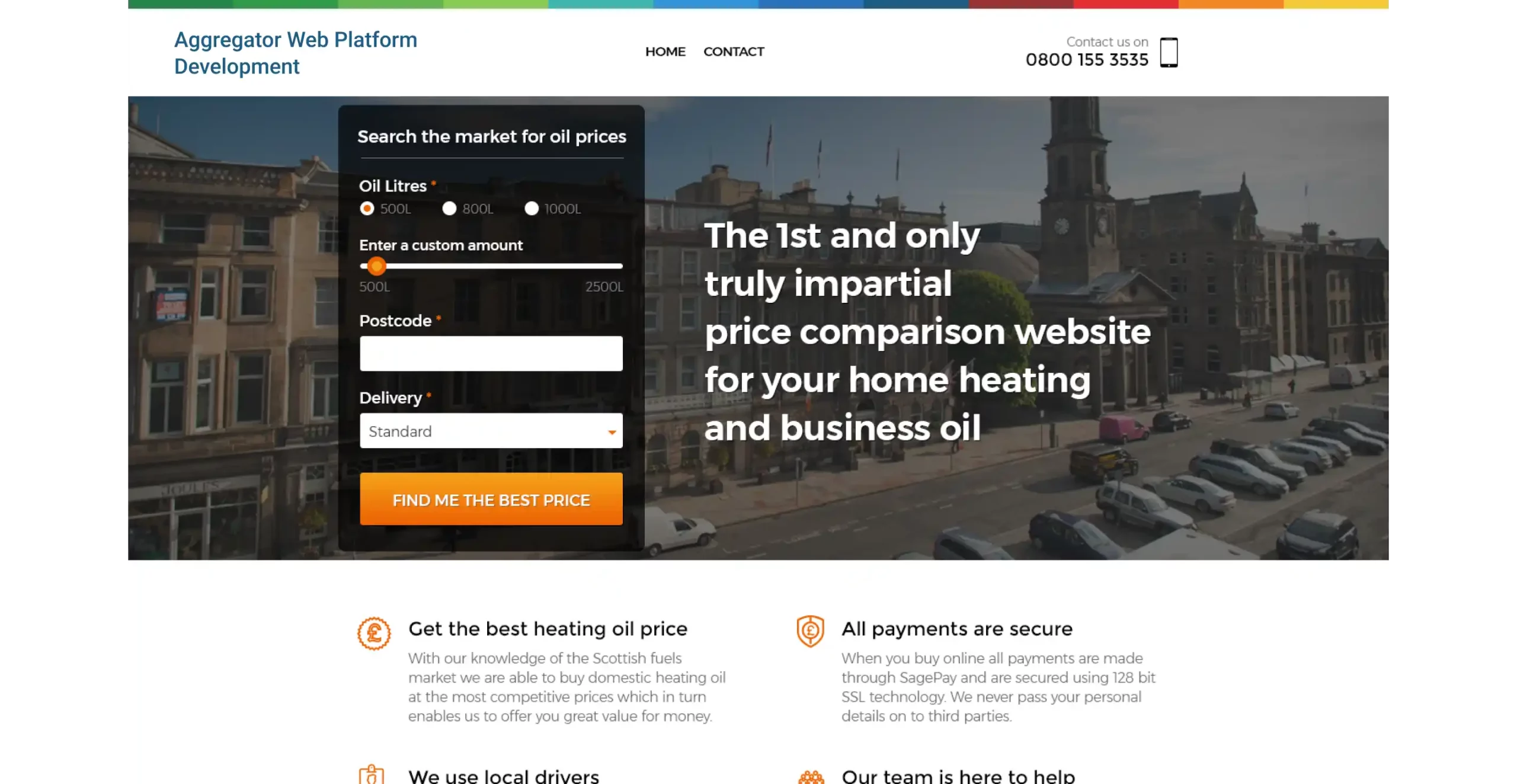 The core of the project was building an online aggregator with comparison of heating oil prices from local suppliers and an option to order heating oil delivery.