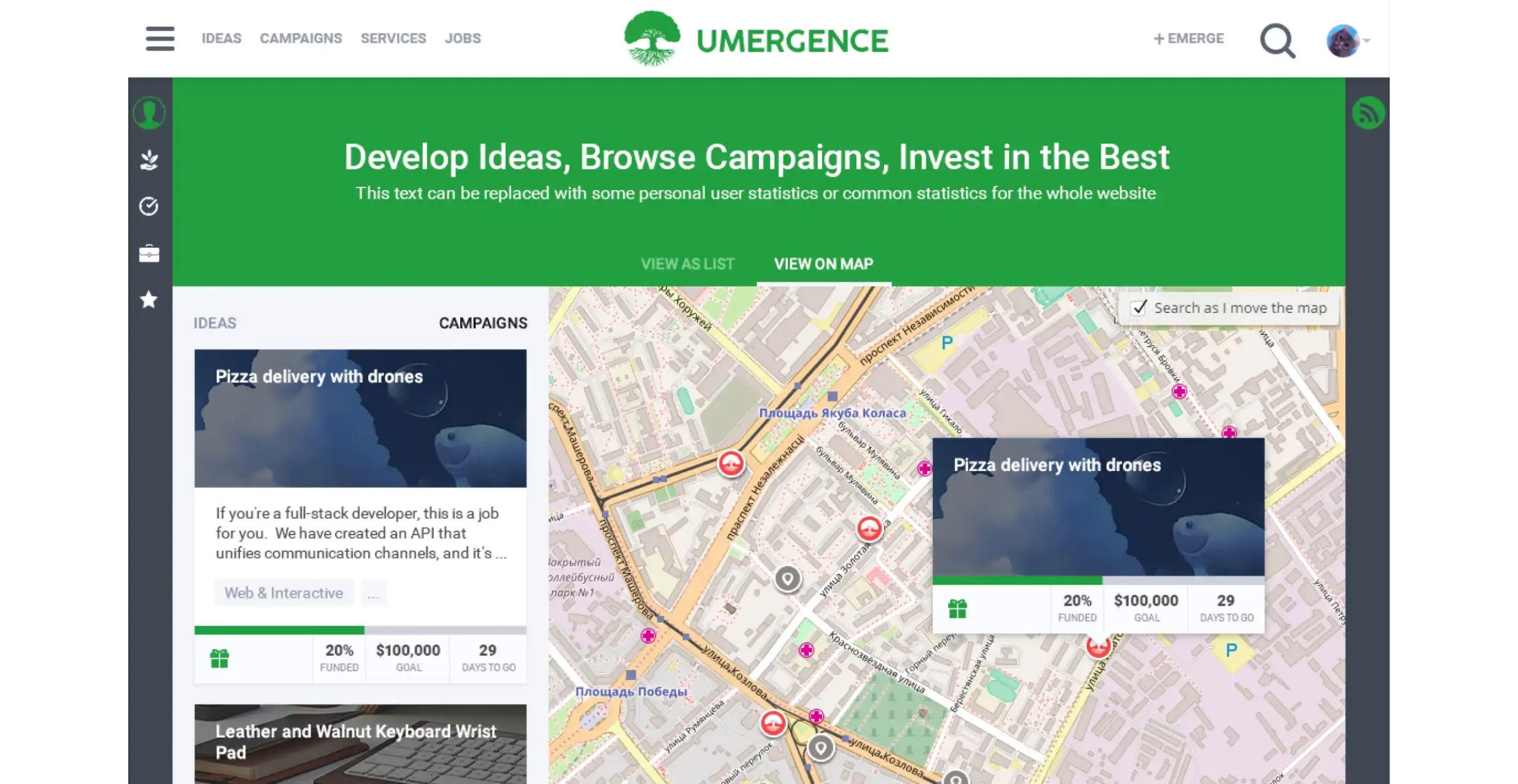 Umergence founders came to SumatoSoft with an idea of a crowdfunding platform that would allow multiple types of investments and donations for individual investors. The platform should have a key feature – to allow entrepreneurs to involve or hire other platform members to speed up the development of ideas or campaigns.